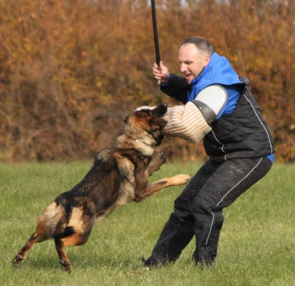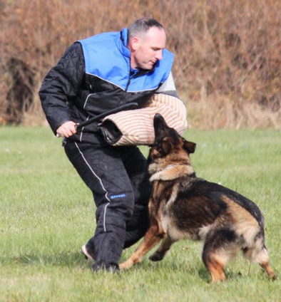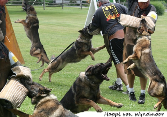 Happi v Wyndmor is the product of the great producer Nathan Fegelhof and Liat vant Tiekerhook. Happy is ''A '' Normal hips and Elbows. She has IPO 1 title and in conformation the ''very good'' rating with KKL1 honors in the breed survey. Many of the pictures here show off the strength and determination of Happi in protection but to see her in person is to meet a loving companion. Happi comes from top producers of GSDs with mother lines to the top kennel Tiekerhook of Holland including Nick v Heiligenbosch, Yoshy vd Dollenwiese, Lord v Gleisdreieck and others. The father of Happi is a dog von Wyndmoor imported for our friend Beth Bradley, Nathan v Fegelhof. I feel Nathan has produced extremely well with a large number of females from different bloodlines. It is our pleasure to be associated with the top GSD and his trainer Beth. In January 2013, Happi was bred to Zwack with pups expected in late March and to their new homes in late May 2013. - Jim Hill
