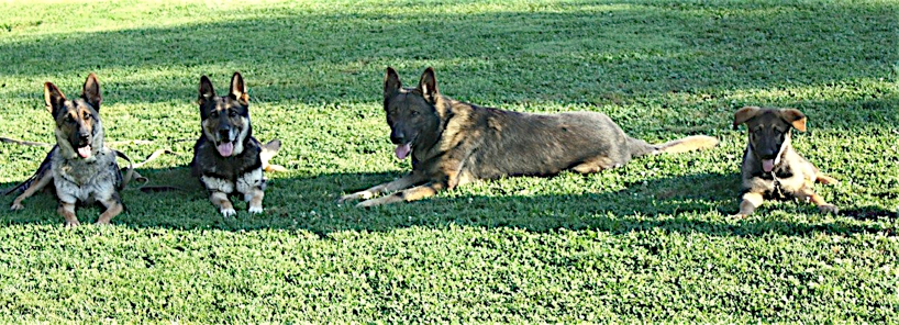 Left to right: G Nixi von Wyndmoor IPO 1 KKL(mother), SG Pasha Von Wyndmoor Sch1 KKL(grandmother); SG Zwack v Holzwinkel IPO 3 KKL (father); the pup is from the “X” litter, call name “Mica.”